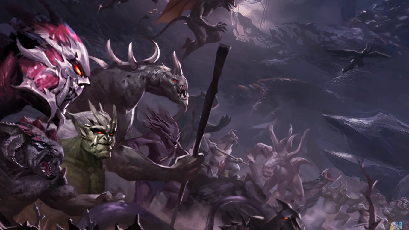Deep within the mountains, South of the Moniyan Empire lies a bottomless Abyss, where darkness reigns over everything. The only light is the crimson lava that flows in the bottomless crevices. Since the beginning of the abyss's reign on the mainland, countless demons became loyal followers of the Abyss. Fervent in their beliefs, the demon chant the will of the Abyss in these deep caverns — Only the strong deserve to rule! .Engraved into this barren landscape as if an ancient demon used the sharpest of blades to carve a disfiguring scar into the Land of Dawn. People call this the Shadow Abyss.