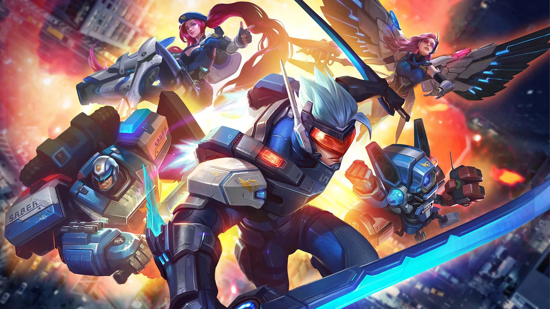 The S.A.B.E.R. are a cyber-themed squad based in Zlatan, an alternate universe's futuristic and sci-fi city. Their mission is to defend and bring justice against V.E.N.O.M., who allegedly stole the Ever Cube. The members of this squad are available as skins for