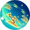 - He equips with two swords along with , , , and .