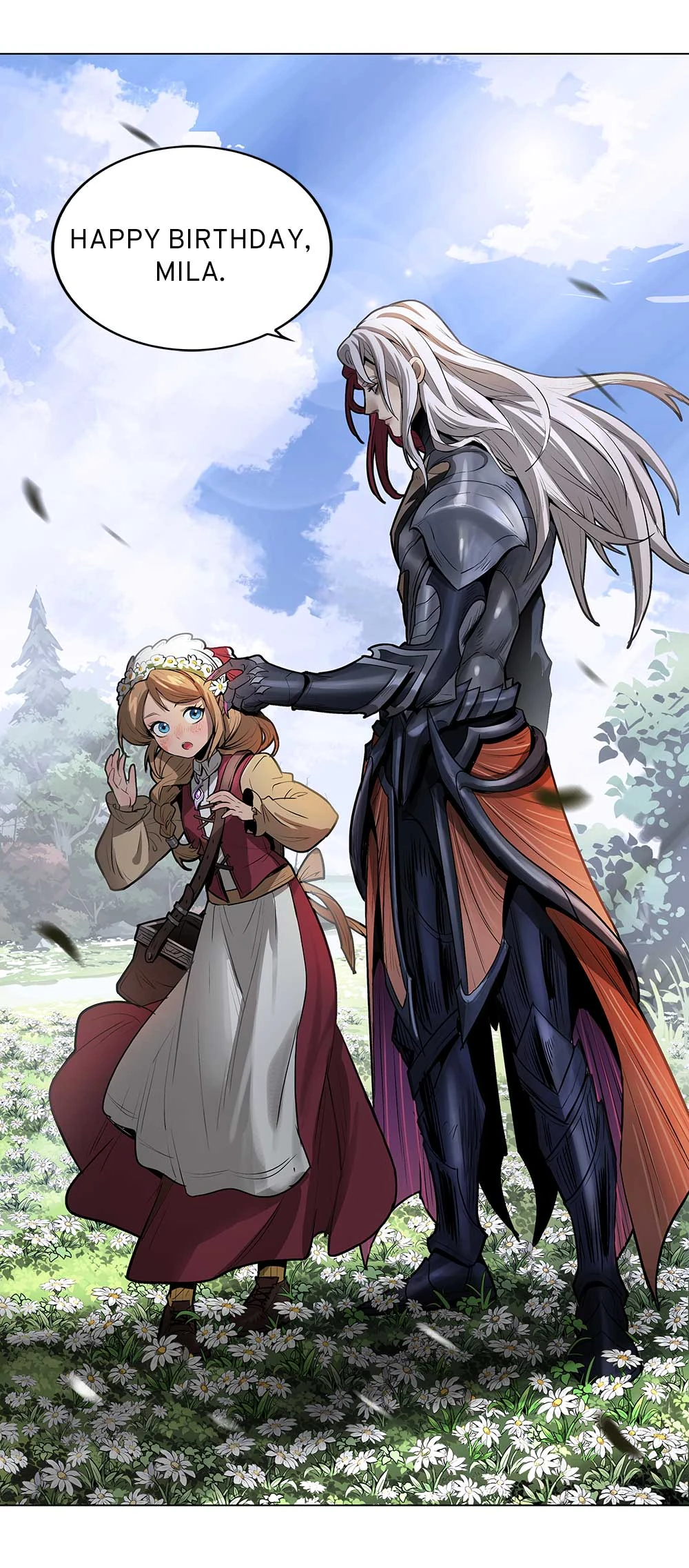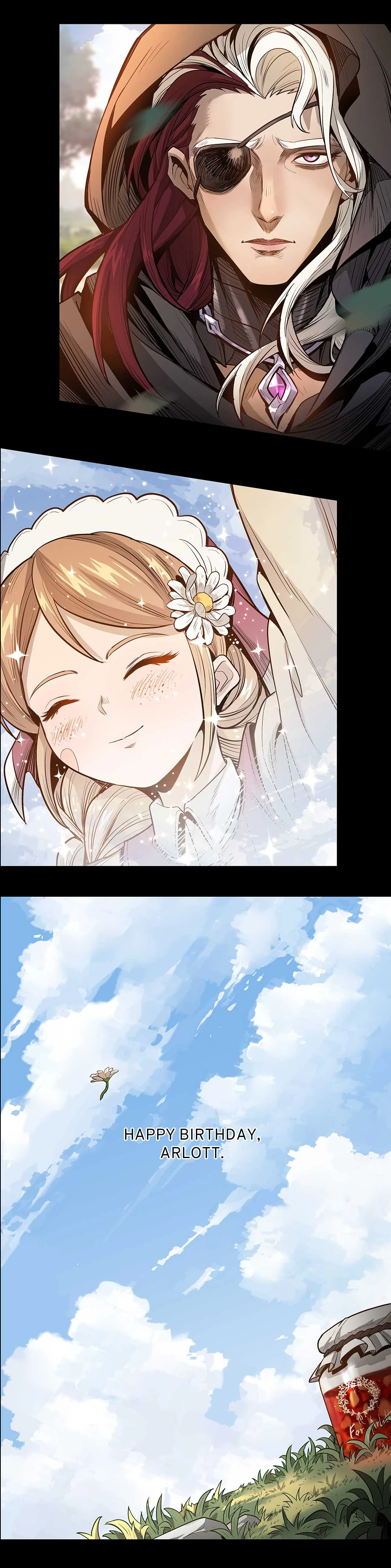 | “ | Arlott steered his carriage, carrying the body of Mila back to her homeland. A gentle breeze blows through, carrying a little white flower onto Arlott's shoulder. He picks up the flower, gentle memories of Mila flow through his mind... Read the comic The Best Day to learn more about Arlott's best memories in his life... |